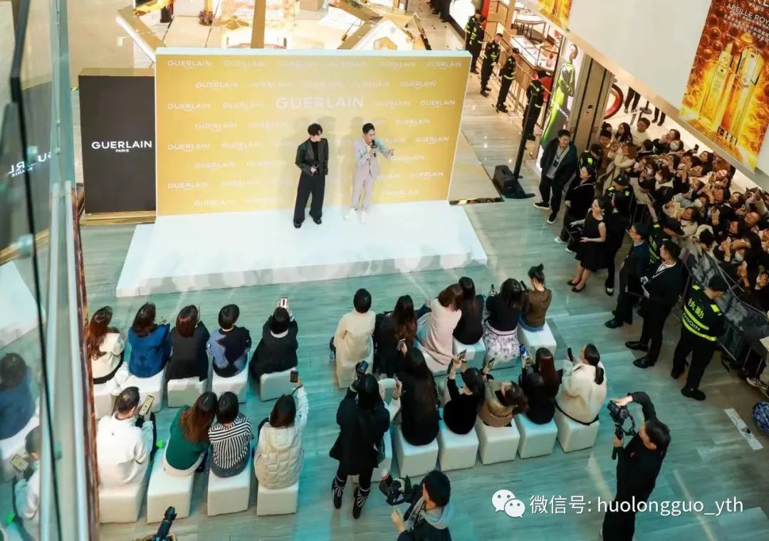 通过前期太原店微信、微博、小红书等平台宣传而来的郭俊辰粉丝,早早持鲜花、海报将阛阓一层大中空围住。