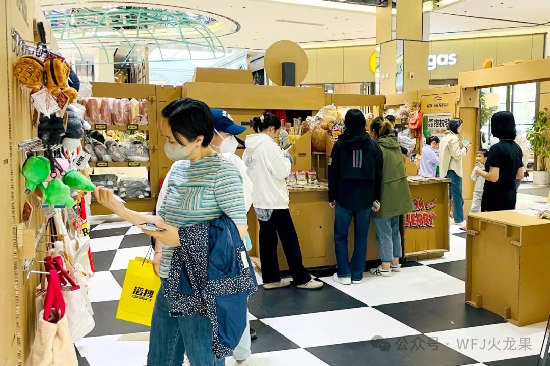 快闪店整体由环保又复古的瓦楞纸搭建而成,极简而不失活力,美式复古电视机和相机打卡点知足主顾自拍的情绪价值,摆件、毛绒玩具、杯具、可爱挎包、徽章贴纸等周边商品既适用又可爱。阛阓还借助艾弗森贝博ballbet官网集团及品牌达人资源,约请众多网红达人到店打卡造势宣传,在小红书等平台一连热榜。
